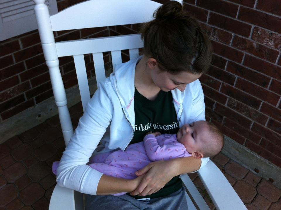 A Saturday afternoon hanging out in the front yard with Faith while Michael and Gabriel did Man Work like cleaning out gutters. To my credit, I did pull weeds for a while before Motherly Duties called me to the rocking chair on the front porch. 🙂