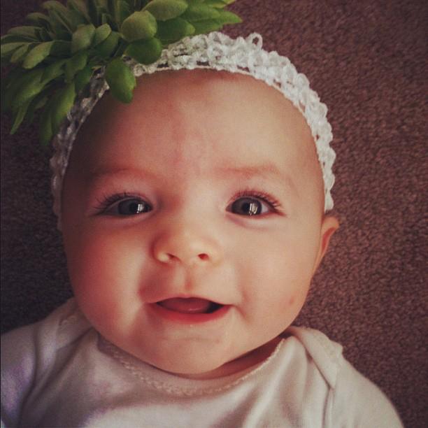 My grandma Lulu gave me a big box of headbands and bows for Christmas. The flower bows are kind of big and scary, but my mom shamelessly puts them on my head anyway because she is having so much fun dressing up a baby girl every day. I forgive her.