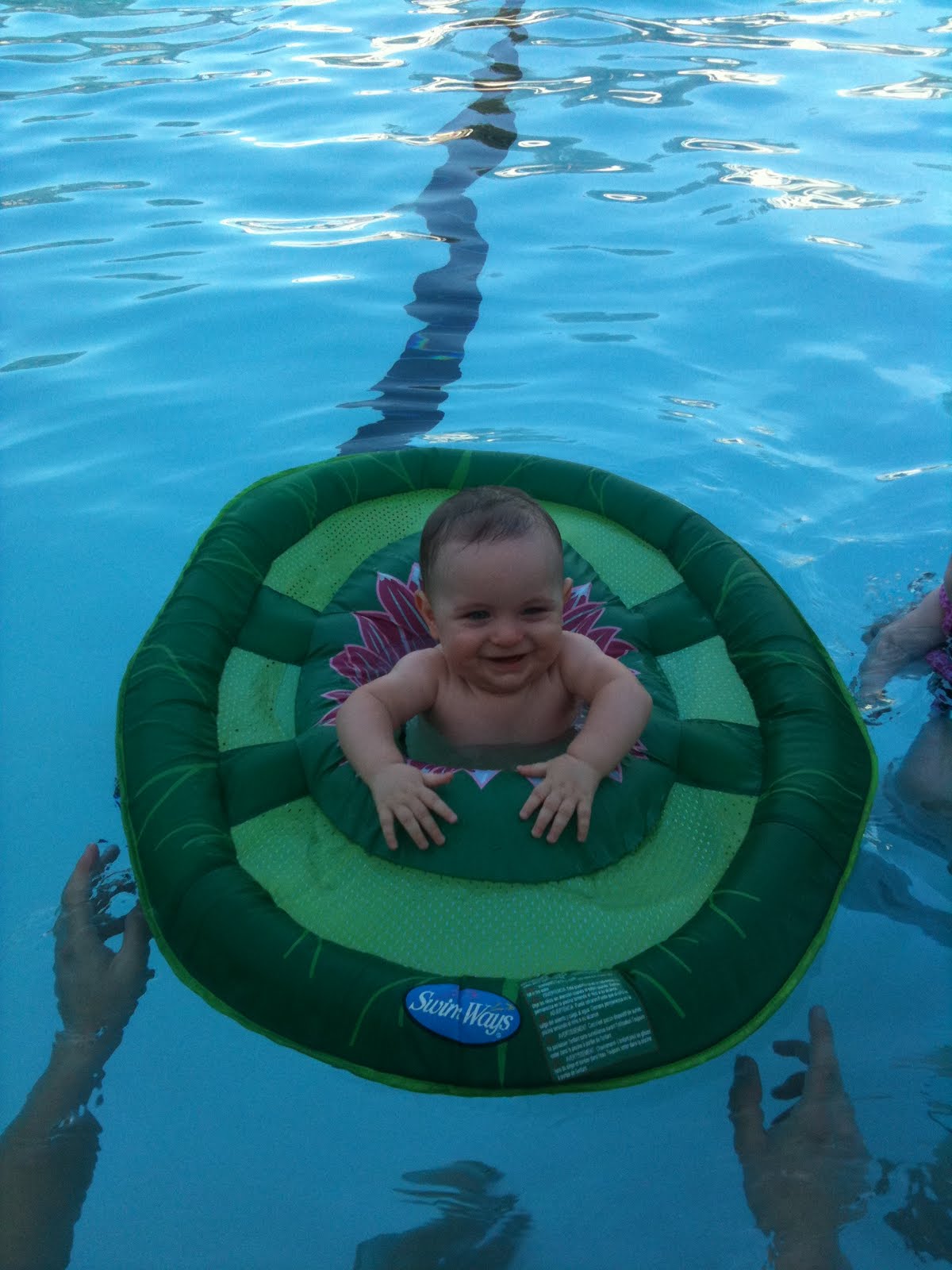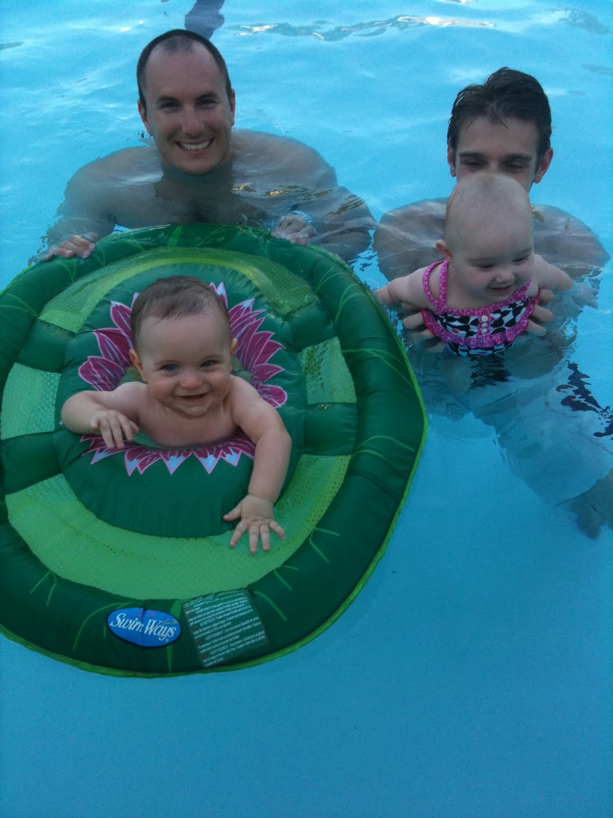 We went swimming with Peter, Kristin and baby Audrey Fontana on Saturday afternoon. Gabriel LOVED the lily pad floatie toy the Fontanas brought!