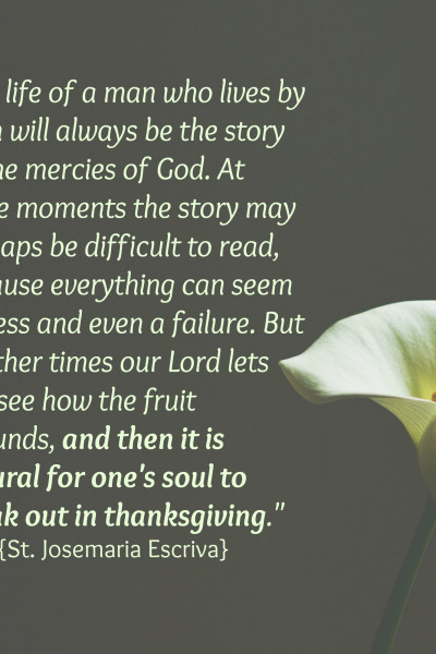 Oh, St. Josemaria. How well you have put into words what is in my heart this Thanksgiving. If you have followed my family's story, you know a little of what Michael and I have been through over the past few years. You may know that this Thanksgiving is the first one in a home of our own after two ... Read More about The thankfulness in my heart today is this.
