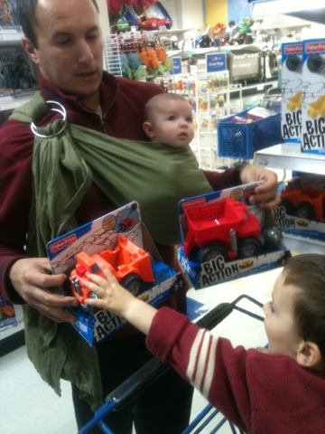 Gabriel picked out an orange truck that launches a ball and a set of wooden musical instruments. Overall not a terrible experience for our first trip to the toy store;) Happy 2nd birthday Gabriel Adam! ... Read More about Birthday trip to Toys R Us