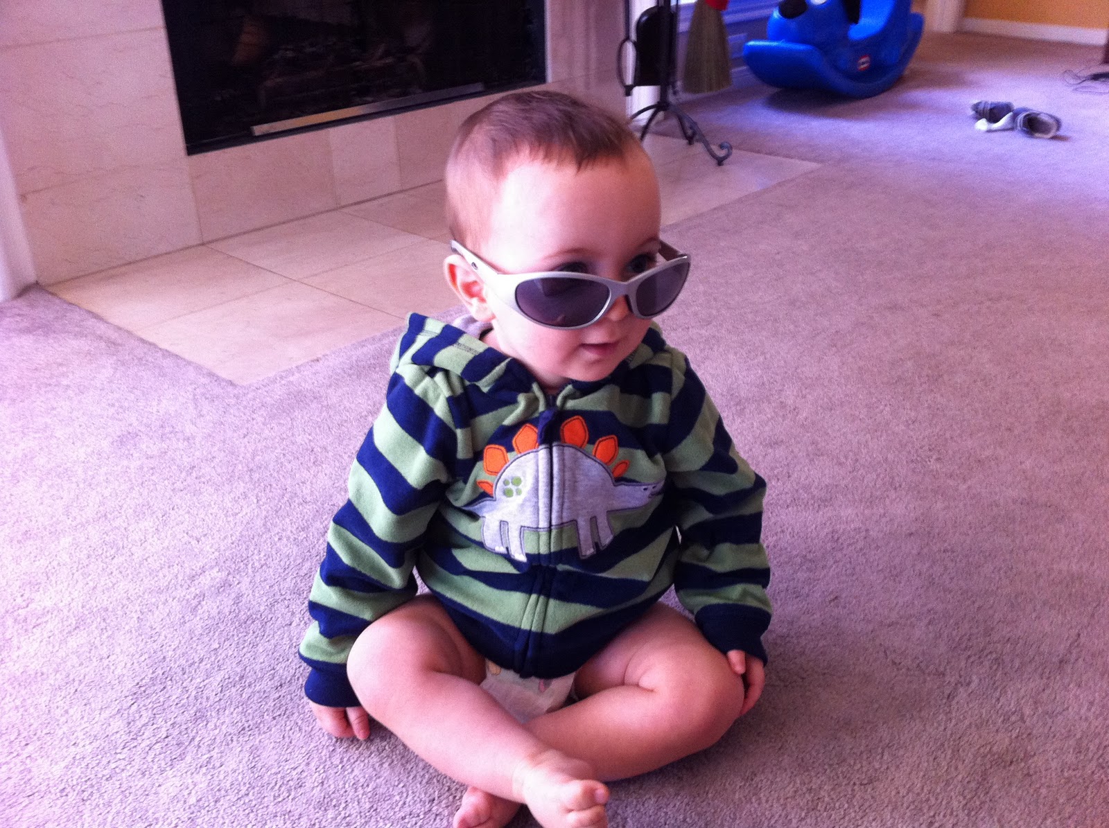 No pants, a sweatshirt, and sunglasses in December? How does this kid make THAT work so beautifully for him?