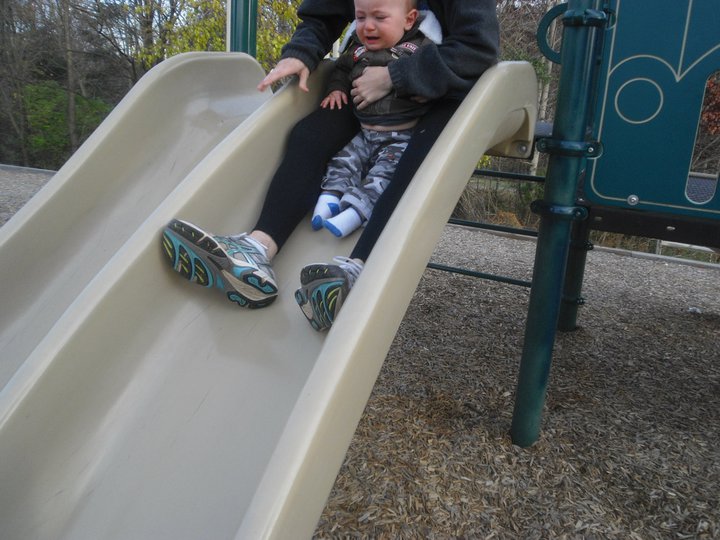 Gabriel had LOTS of fun on the slide with Aunt Michelle…
