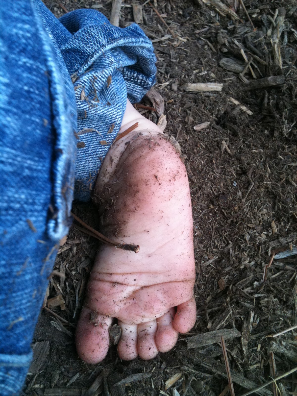 We went to the park this morning before the babysitter got here (MDO is out this week), and Gabriel had a great time rolling around in the woodchip/dirt surface of our neighborhood playground. I snapped this photo of his adorable, dirty little feet. He’s already such a boy…completely happy outside, covered with dirt and grass stains π