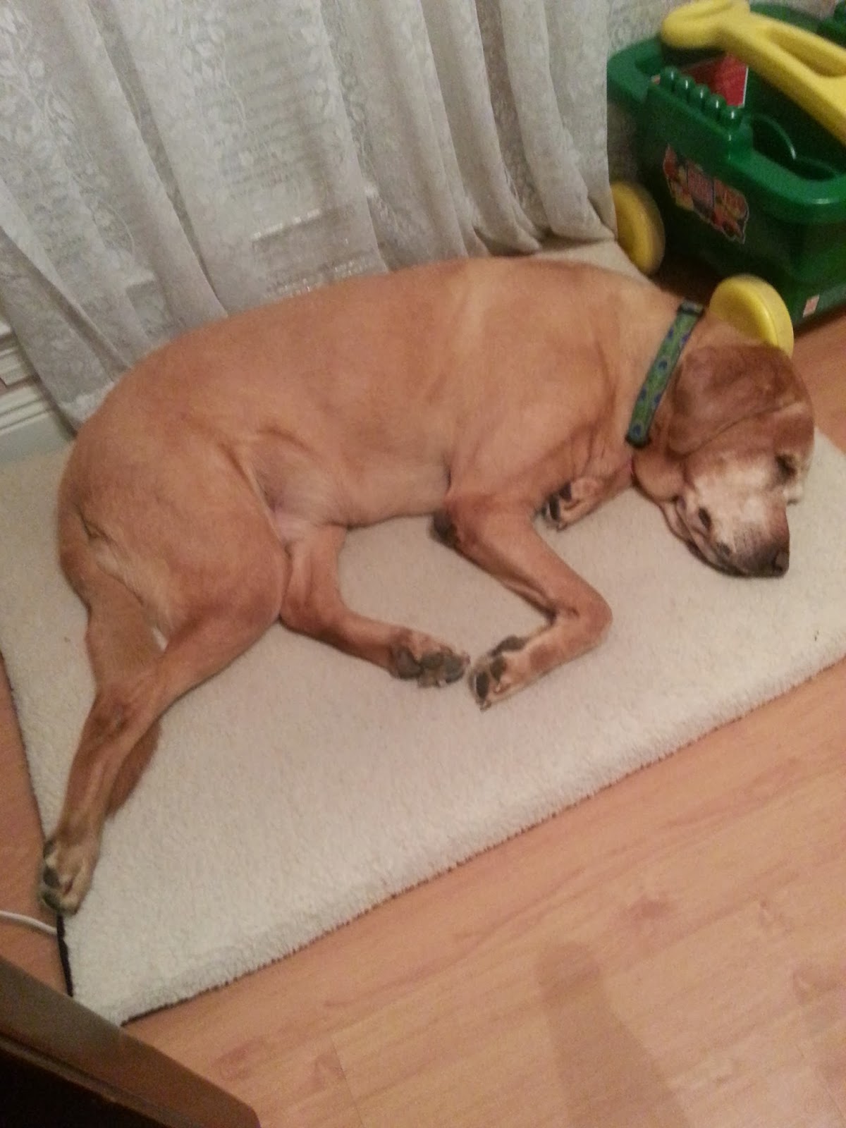 Long-suffering, kind old Emma. She lets my kids hug her and tug her ears and sit on her back. She lets them run up to her, throw their arms around her neck, and whisper in her ear, “I wuv you, Emma!”