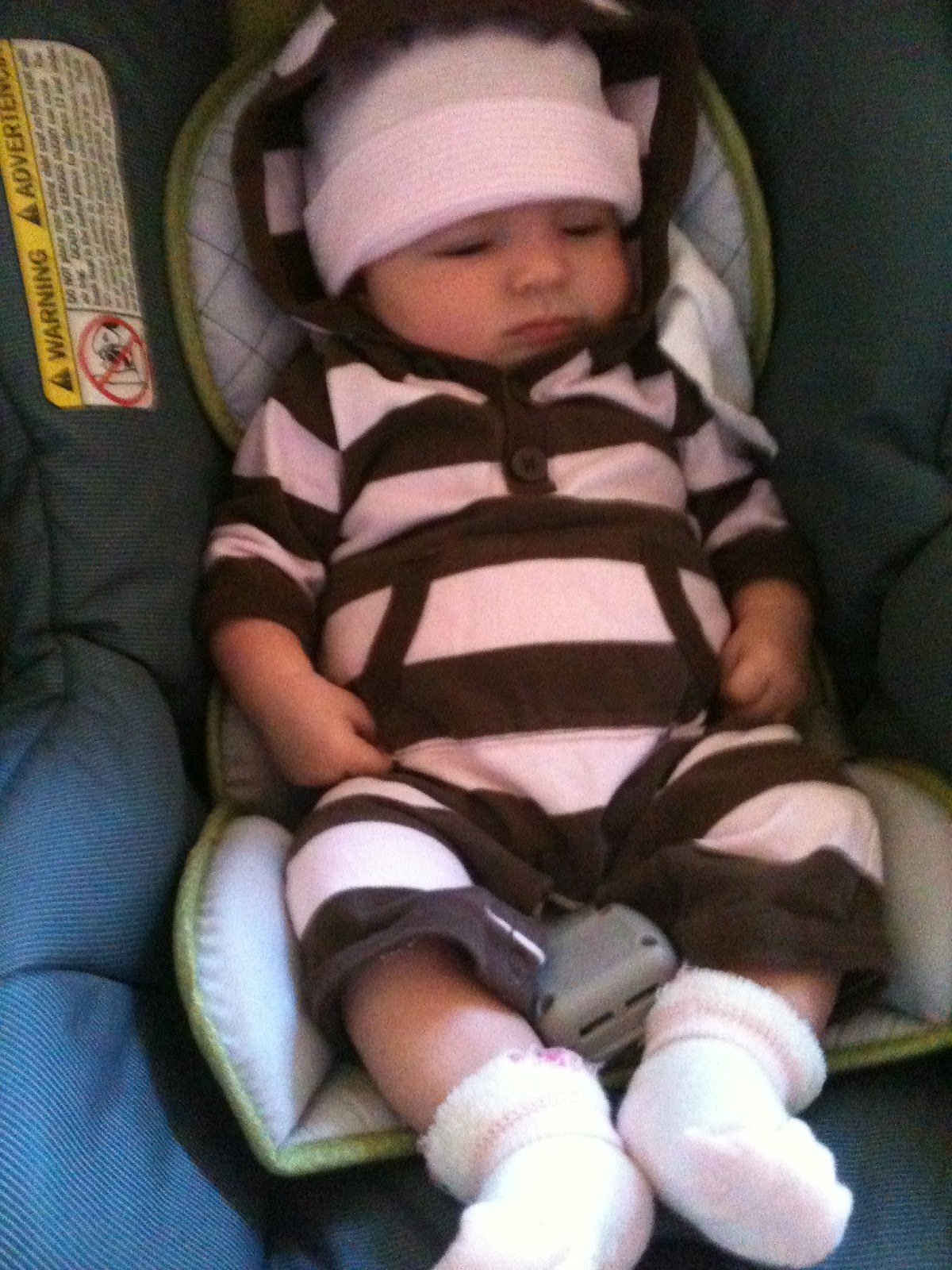 We attended a Halloween-themed birthday party for a little one-year-old friend of ours, Evelyn Rose. Faith wore a little pumpkin onesie that someone gave us, and was mistaken for a baby boy about five times because I forgot the humongous black bow I had to help with her outfit’s gender-neutral faults. I didn’t take offense though. 🙂