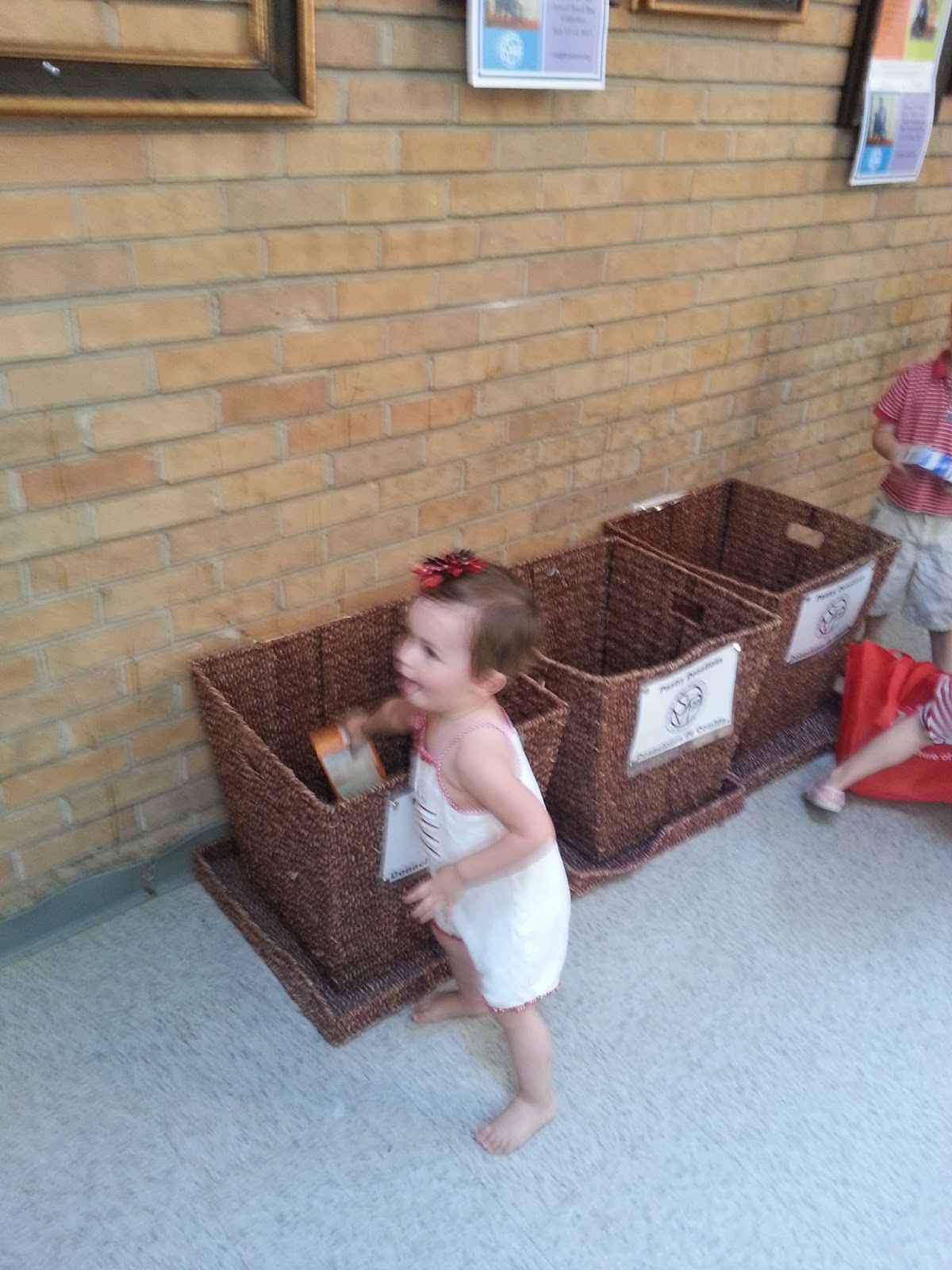 Our friends the Gerkens invited us to a little July 4th play date to celebrate the feast day of Blessed Pier Giorgio Frassati, the patron saint of their newborn son, Joseph Frassati Gerken. Mary Lou had everyone meet at the park behind their church for cupcakes and juice. From there, we made a little “pilgrimage” to the food pantry in the church to let the kids put food in the donation bins. It was a pretty cute event.:)