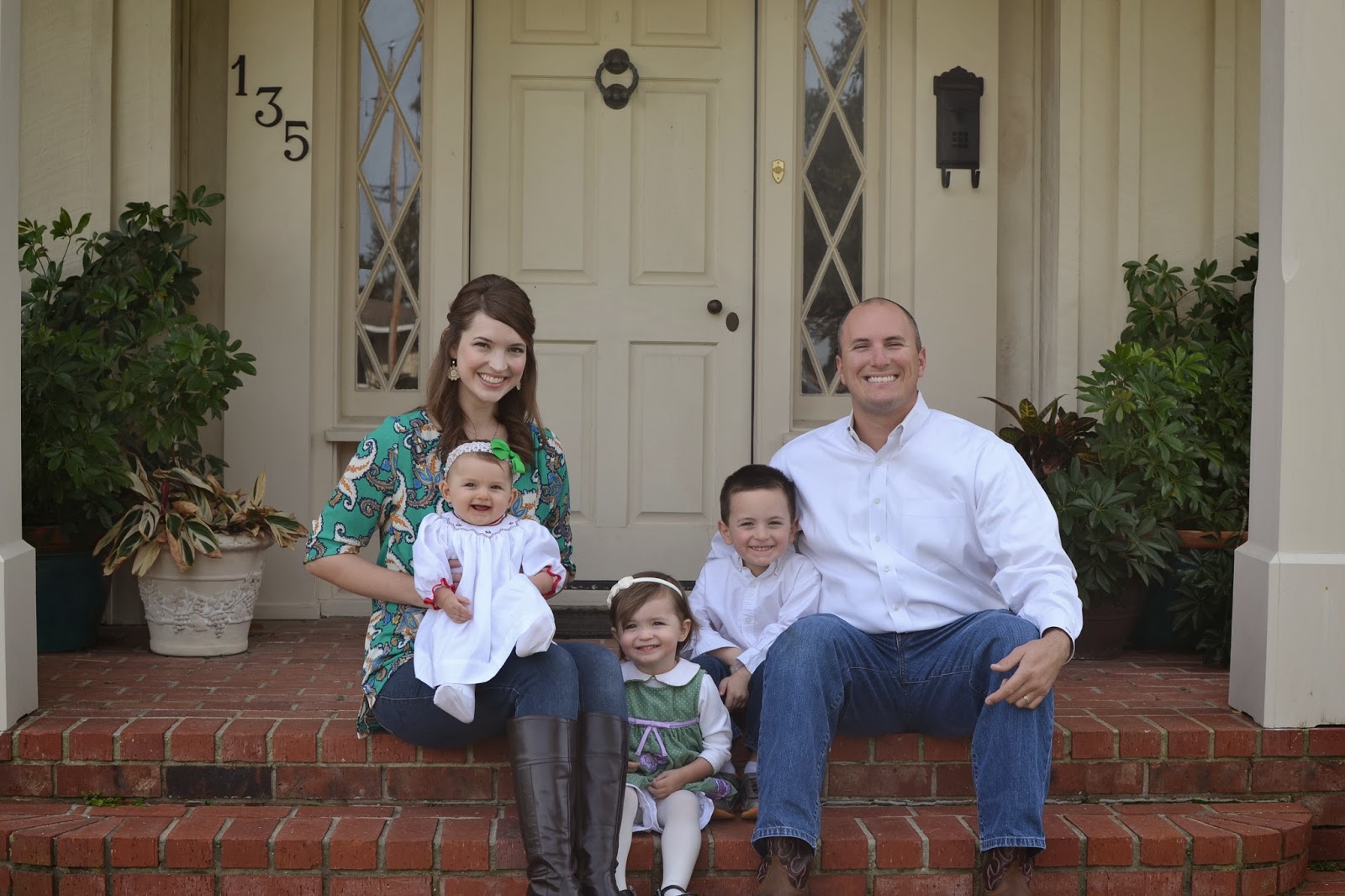 If you happen to stumble across this post and see our cute little family picture and think “why, what a nice and put-together person that Humble Handmaid is!”, please allow me to admit that I was not a particularly nice person in the days and moments preceding the taking of this picture. I wanted a nice family photo for our Christmas card, and (goodness knows my husband knew it!) I was going to get that photo taken if it was the only thing I did on…you guessed it…Thanksgiving Day at my sweet grandparents’ house. I think I was probably something like a Southern Belle drill sergeant: nagging, pleading, controlling and ordering everyone around with a thick coat of sugar on top but some thinly-disguised don’t-mess-with-my-dreams-today Crazy Woman underneath. Ick.